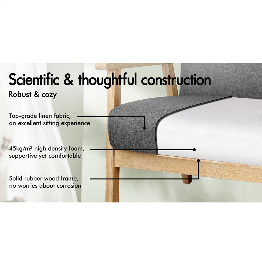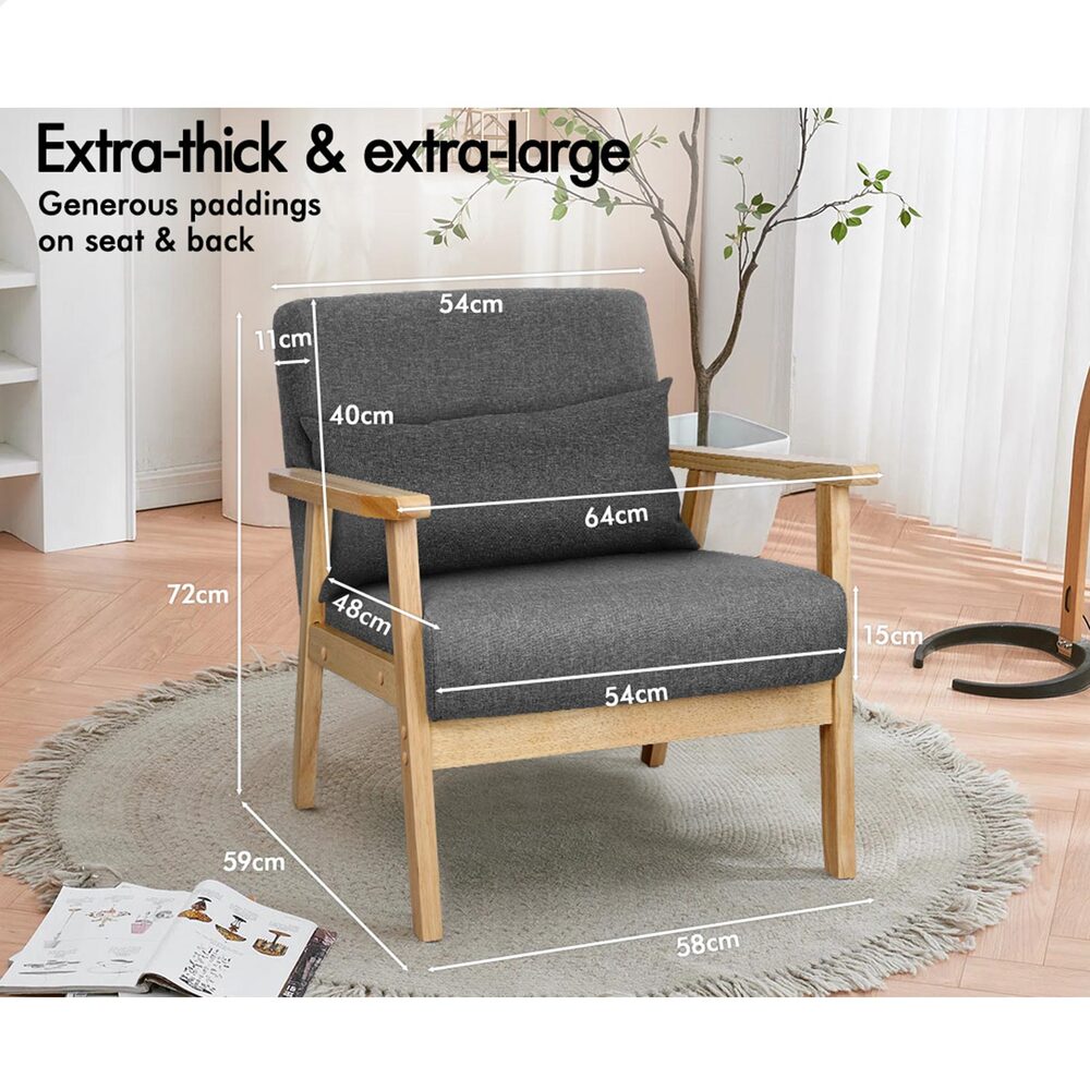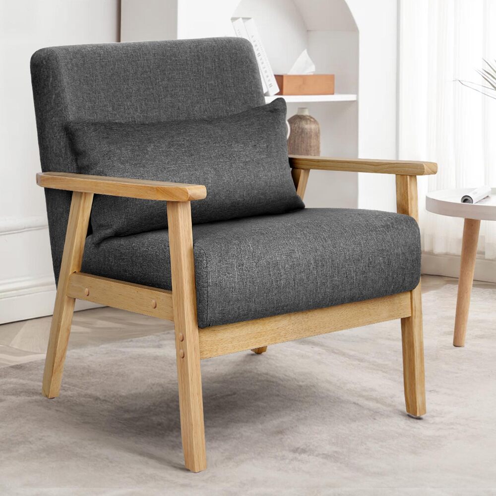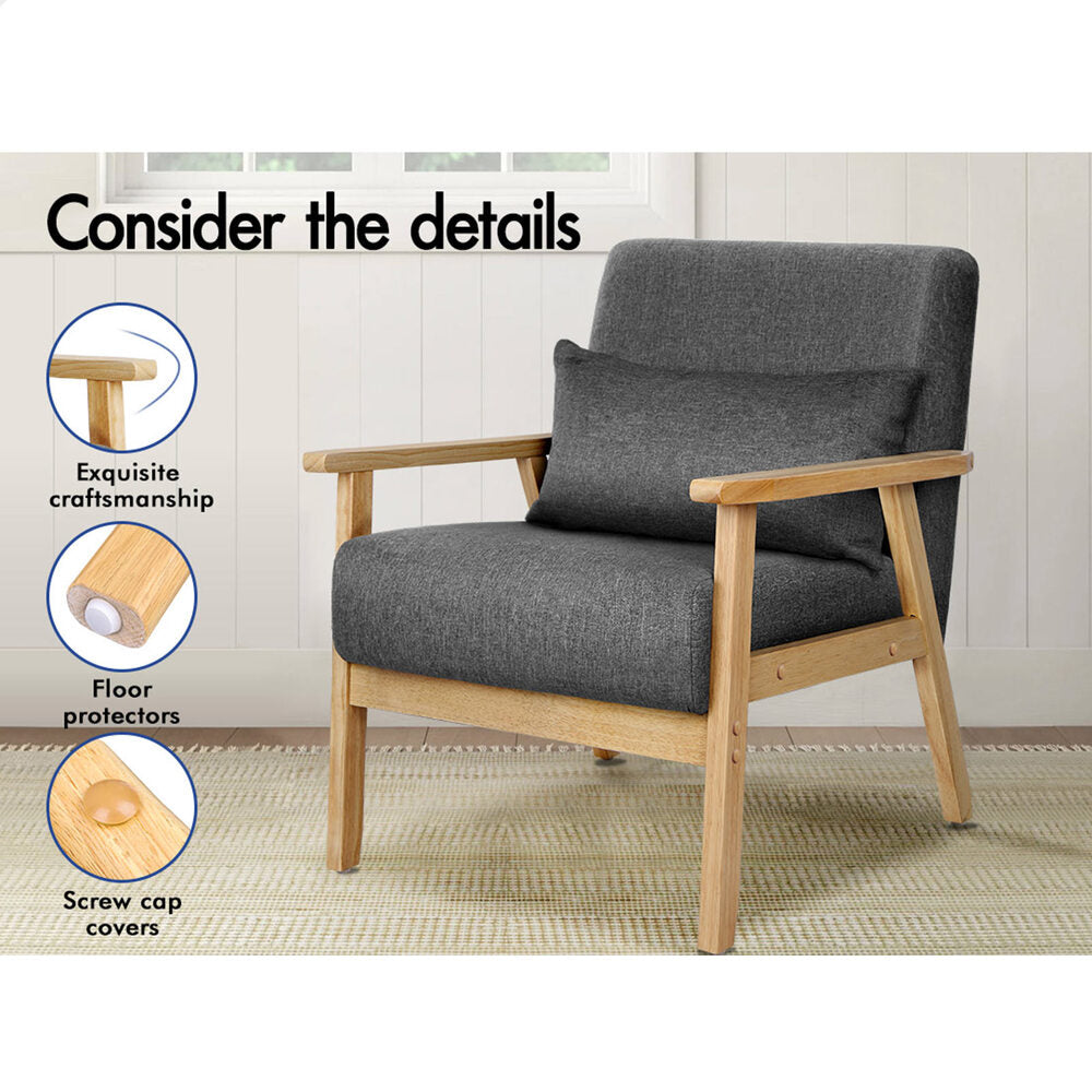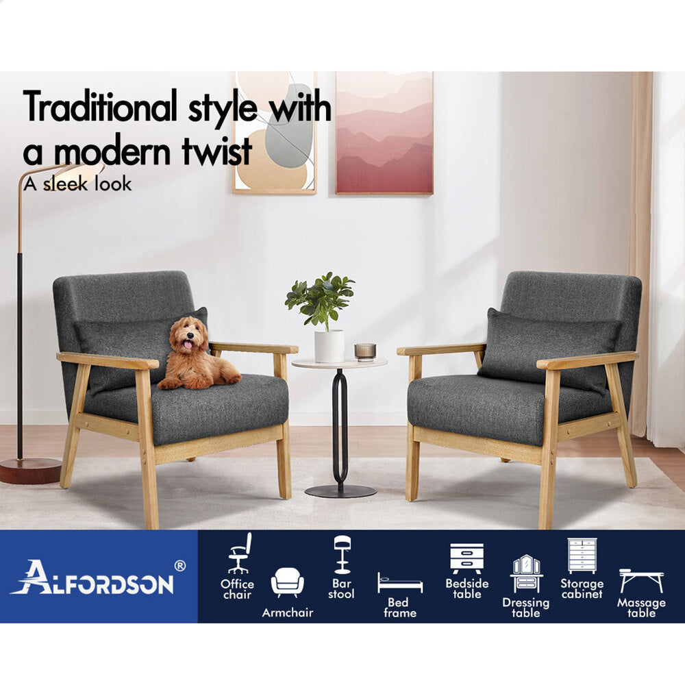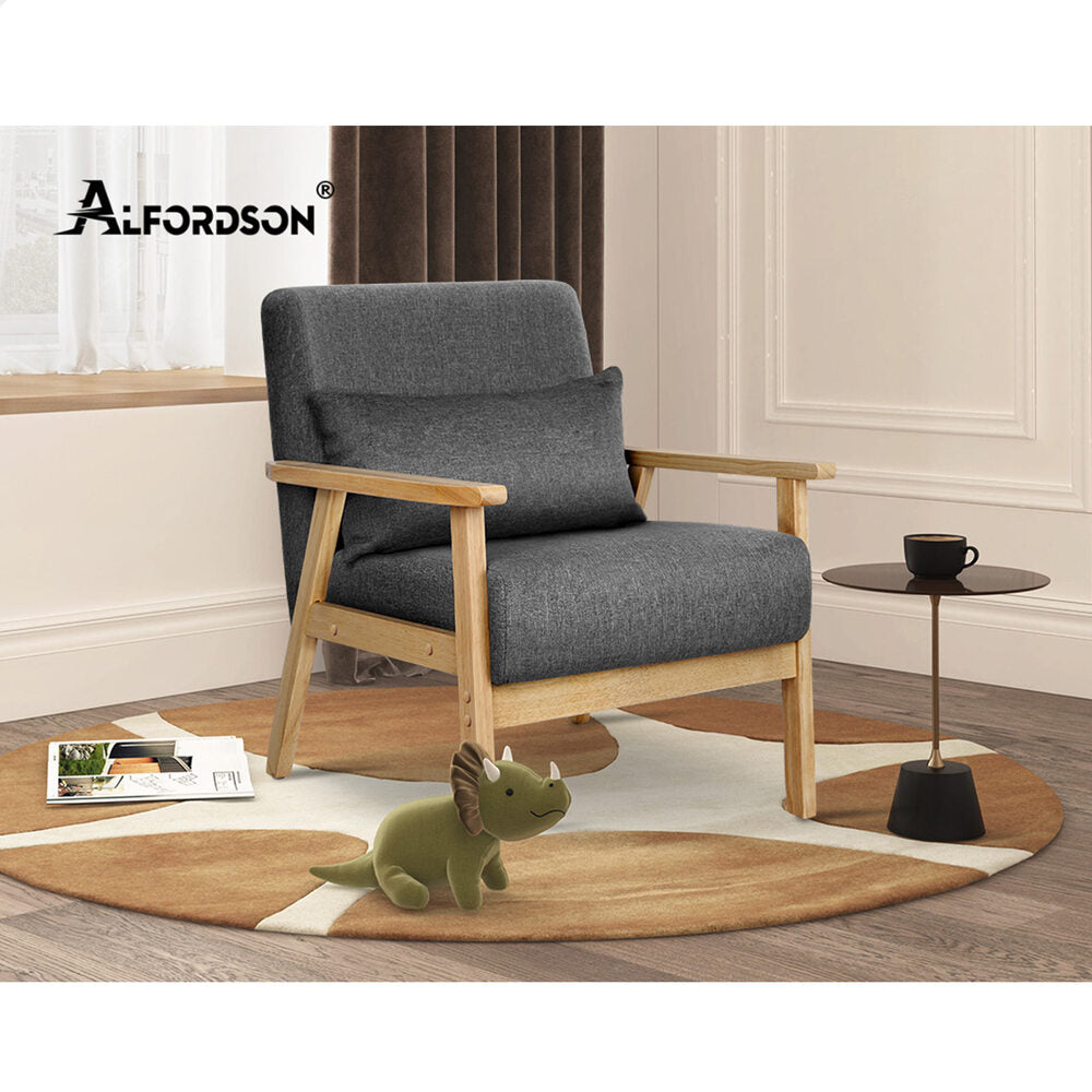 ALFORDSON Wooden Armchair Lounge Accent Chair Fabric Grey