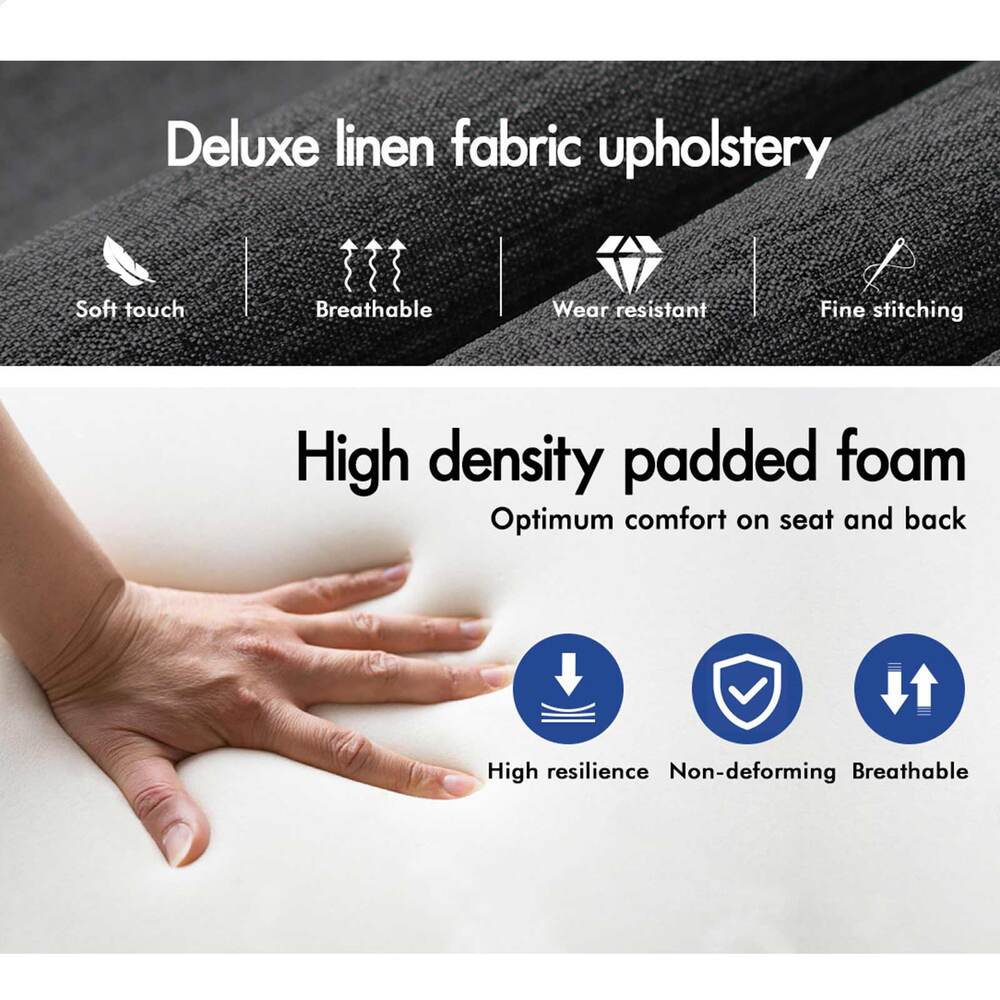 Not only with its iconic design and timeless appeal, this couch is also cozy and practical. Upholstered in premium linen fabric, the seat and backrest are richly padded with high-resilience foam, providing adequate support in the right places. The solid rubber wood frame and advanced suspension system balance softness and durability for a delightful sitting experience.