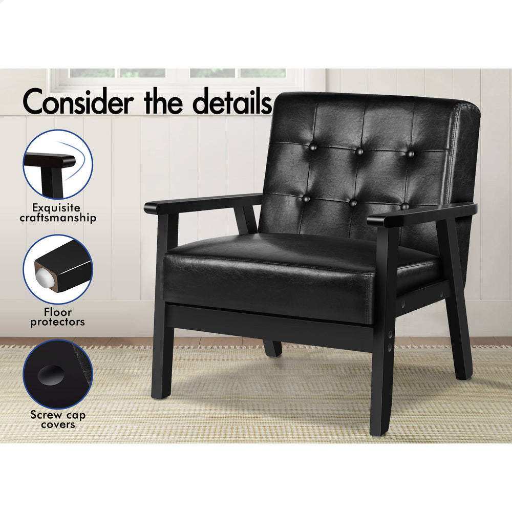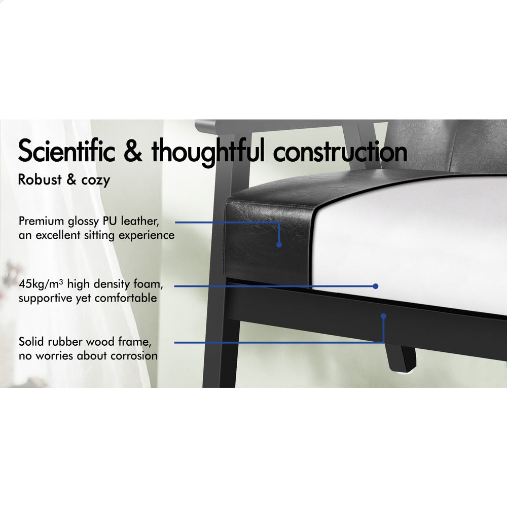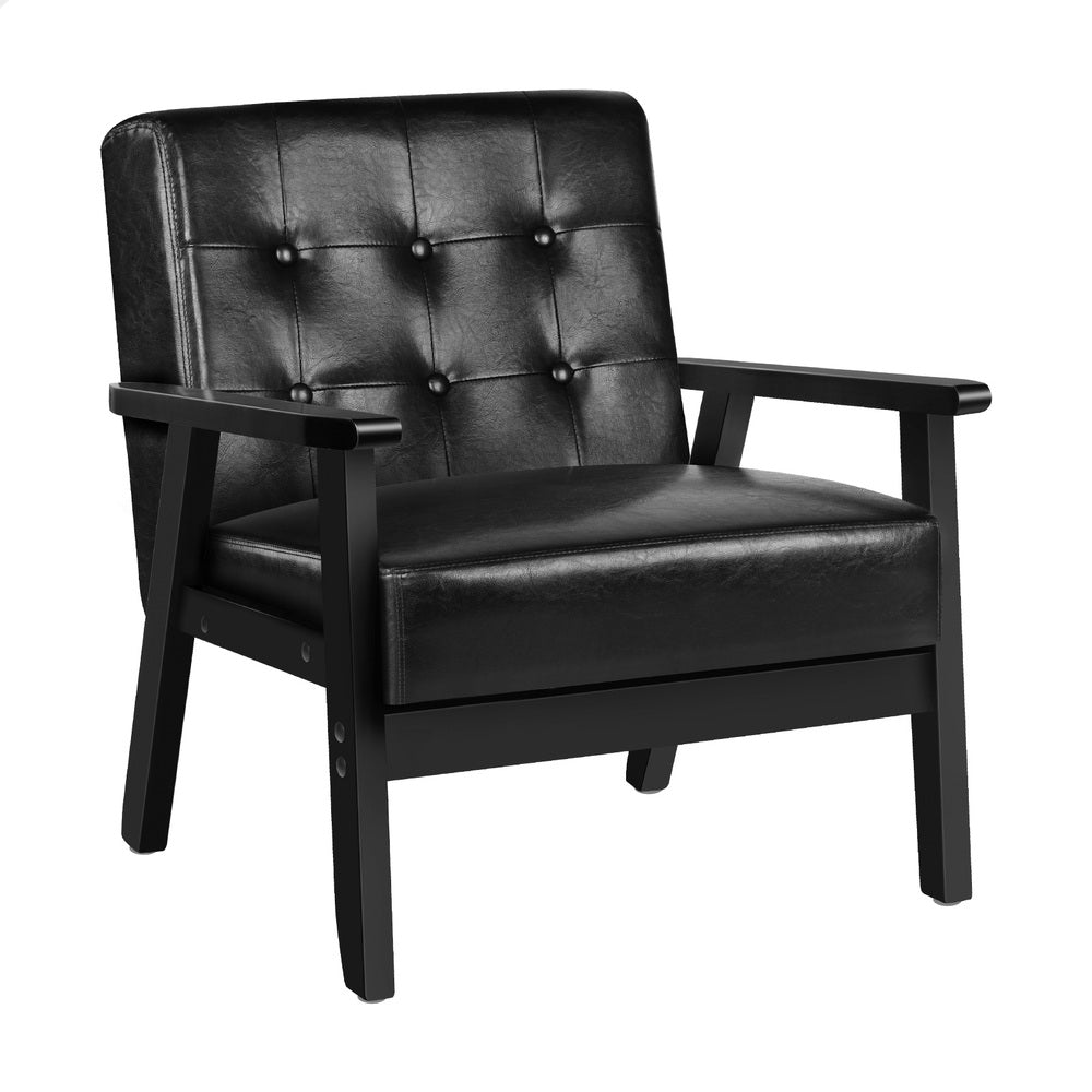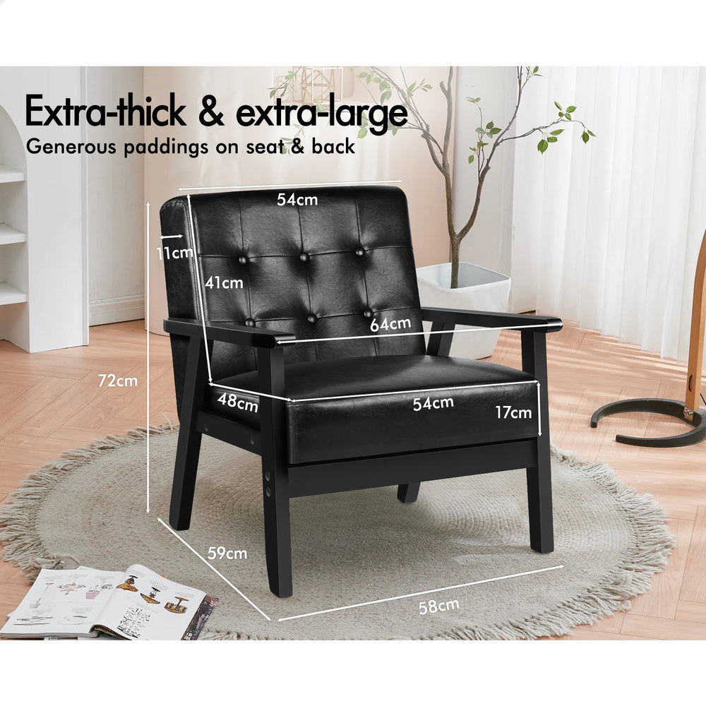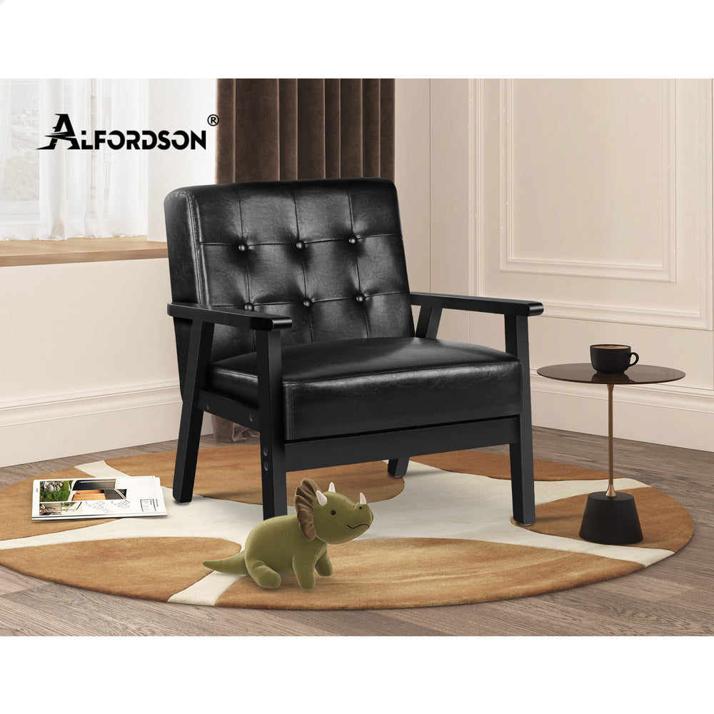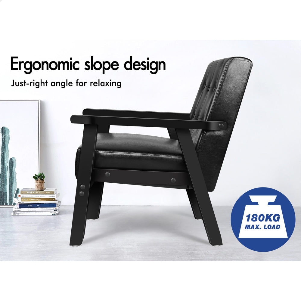 ALFORDSON Wooden Armchair Accent Lounge Chair PU Leather Seat Sofa Couch Black