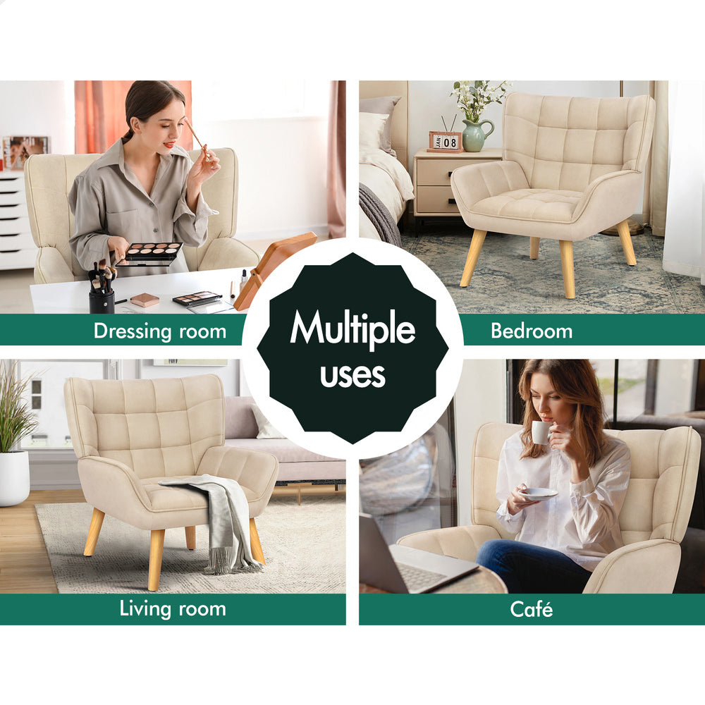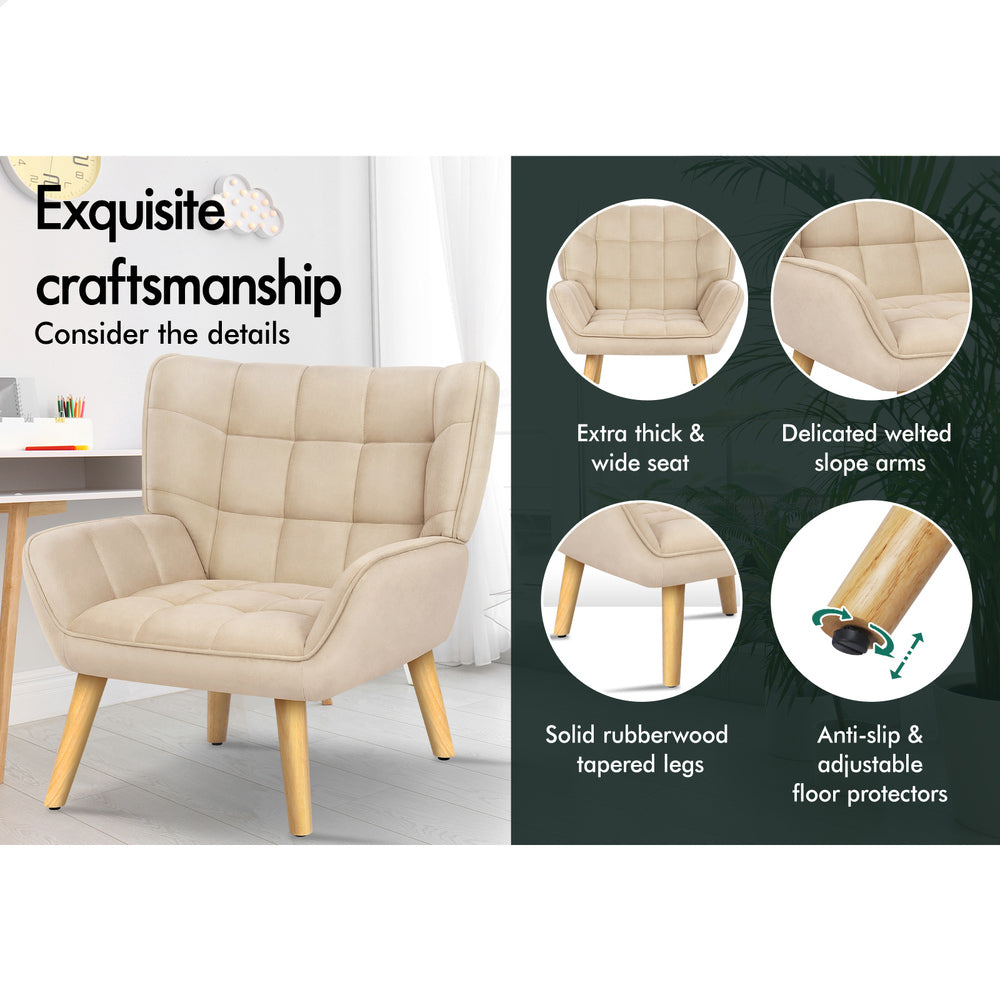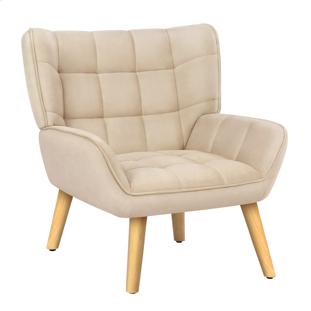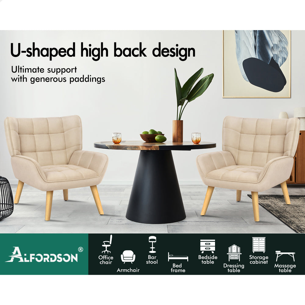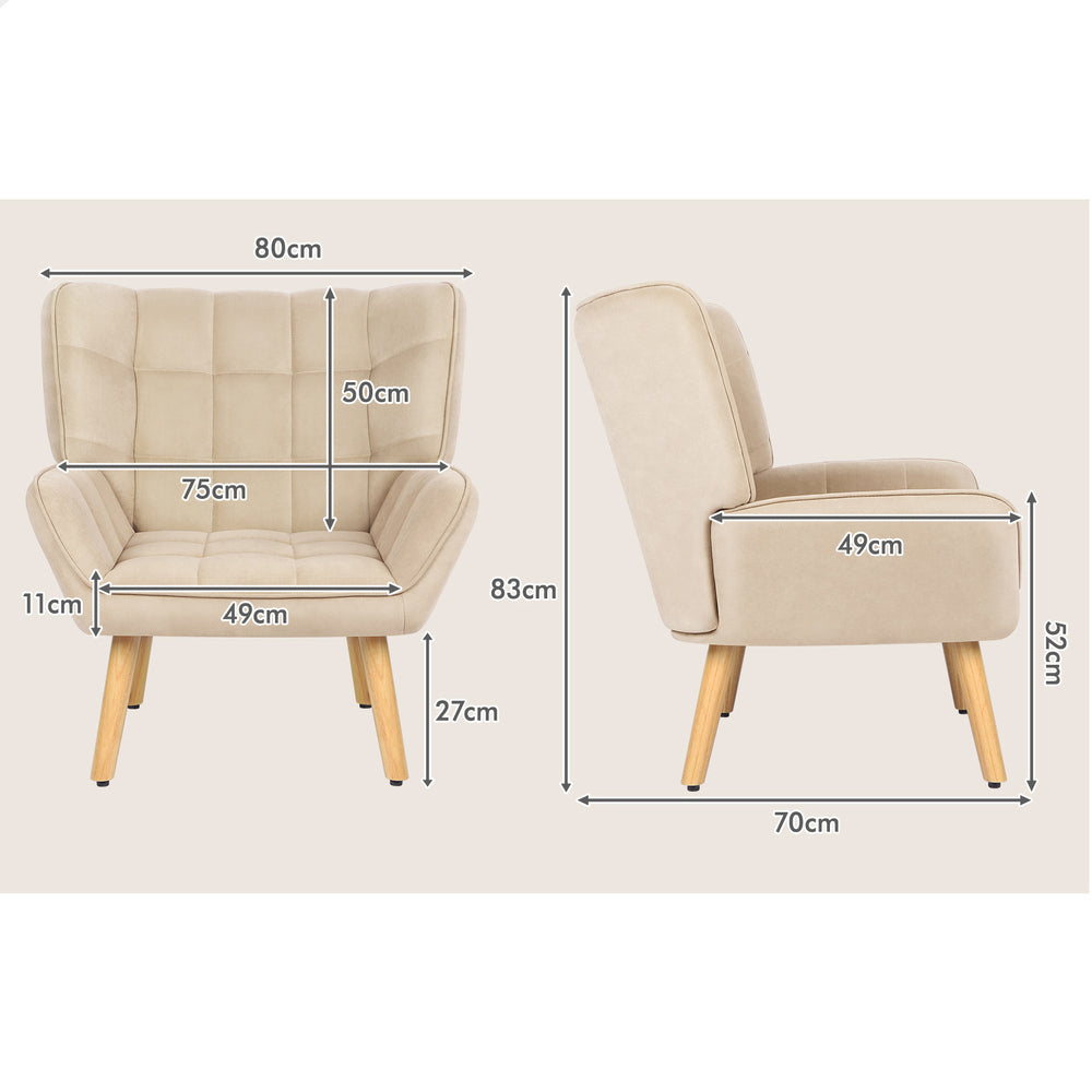 ALFORDSON Wooden Armchair Lounge Accent Chair Sofa Couch Velvet Tub Seat Beige