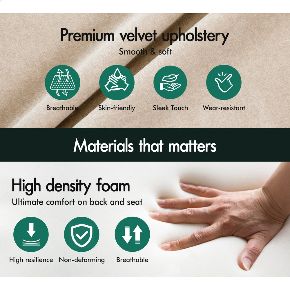 * Deluxe velvet fabric upholstery, soft and long-lasting