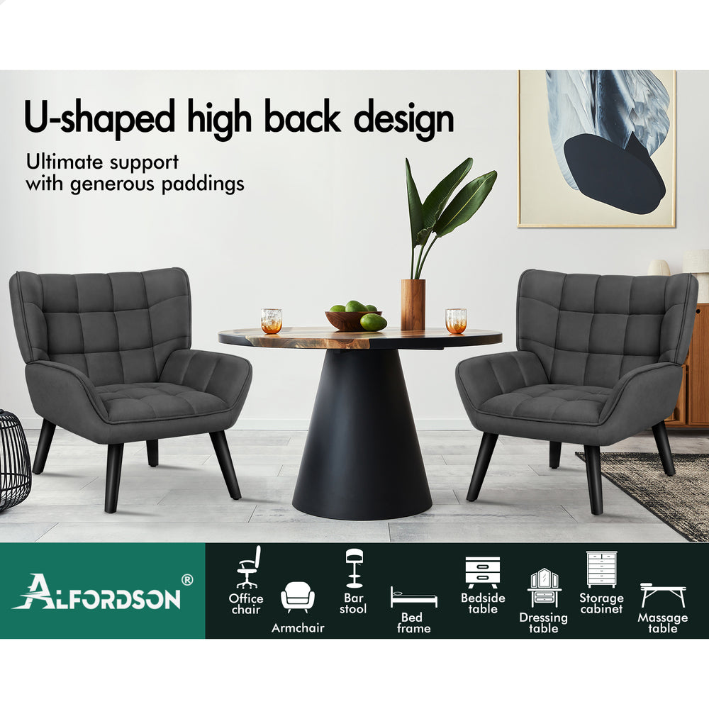 This ALFORDSON® armchair is a perfect seat as a comfortable lounge chair in your living room for having a cup of morning coffee, a vanity chair at the corner of your bedroom, or an occasional chair for creating a conversation spot in your office.