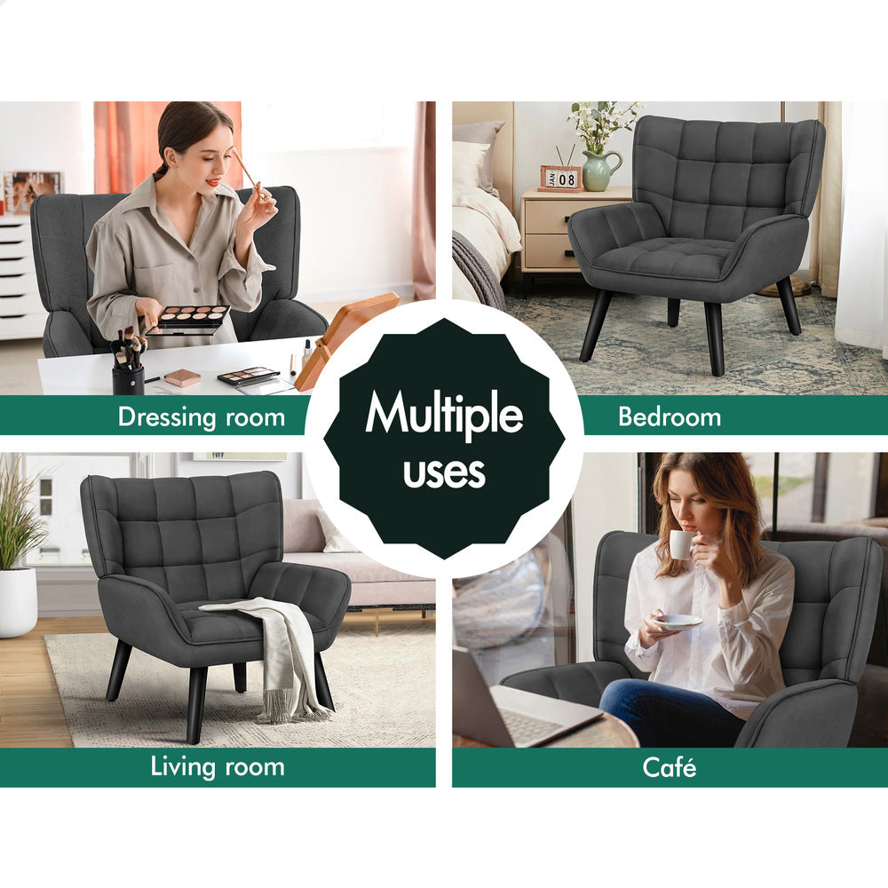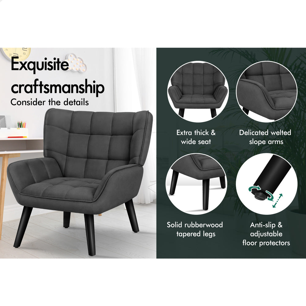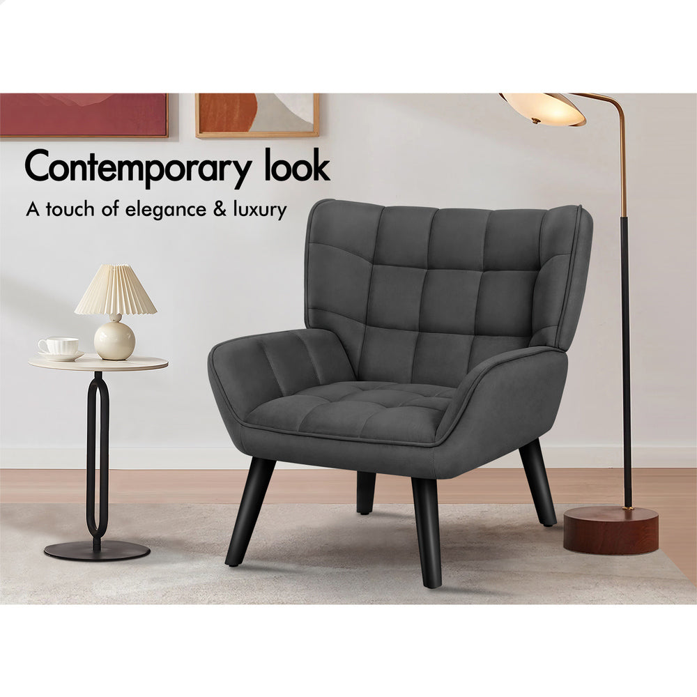 ALFORDSON Armchair Accent Tub Chair Lounge Sofa Couch Velvet Seat Wood Grey