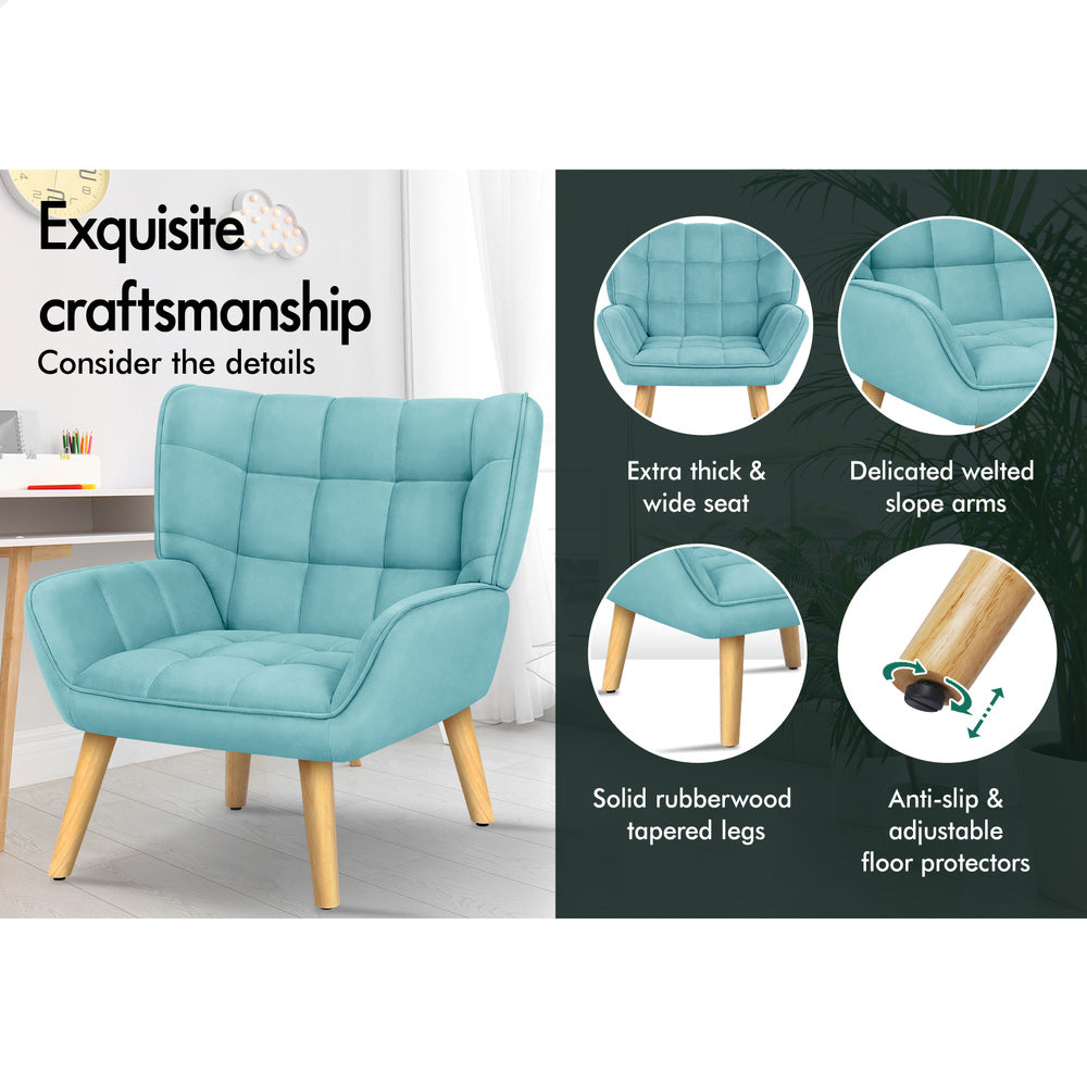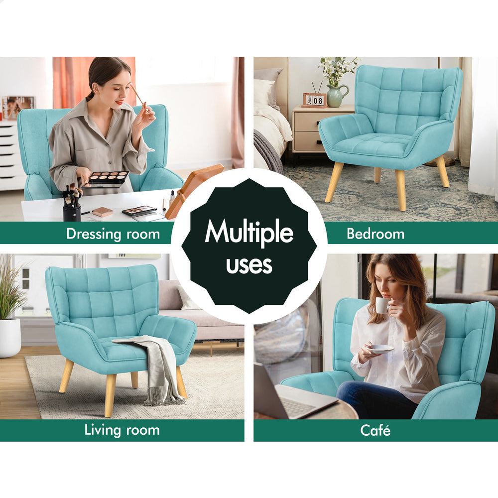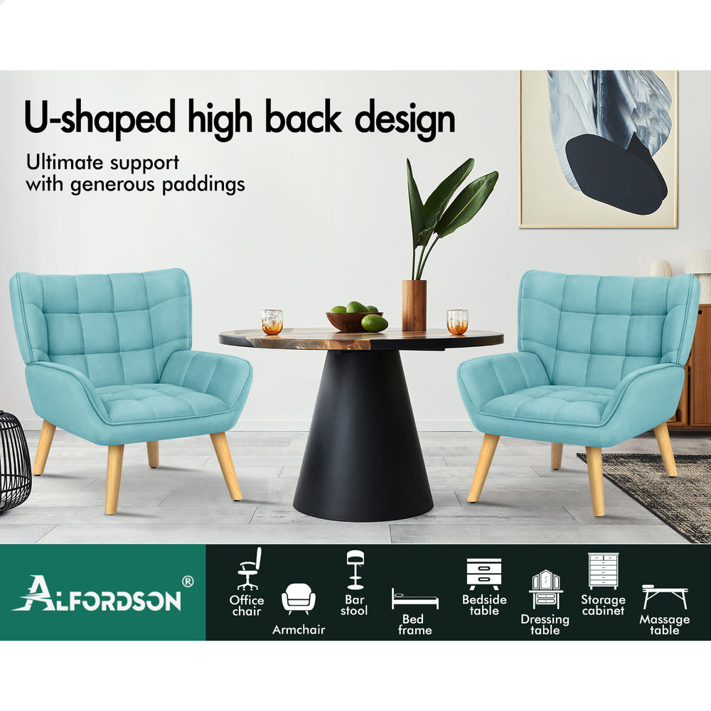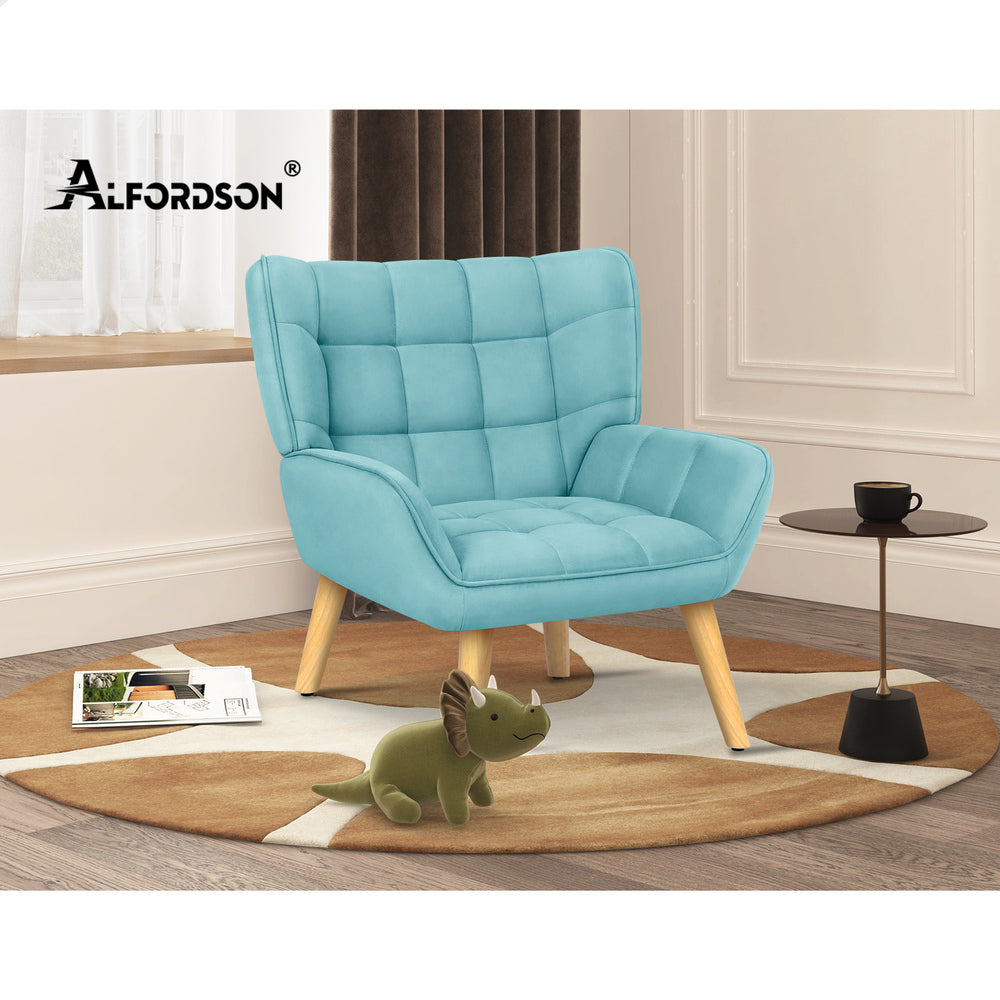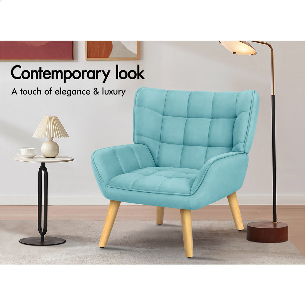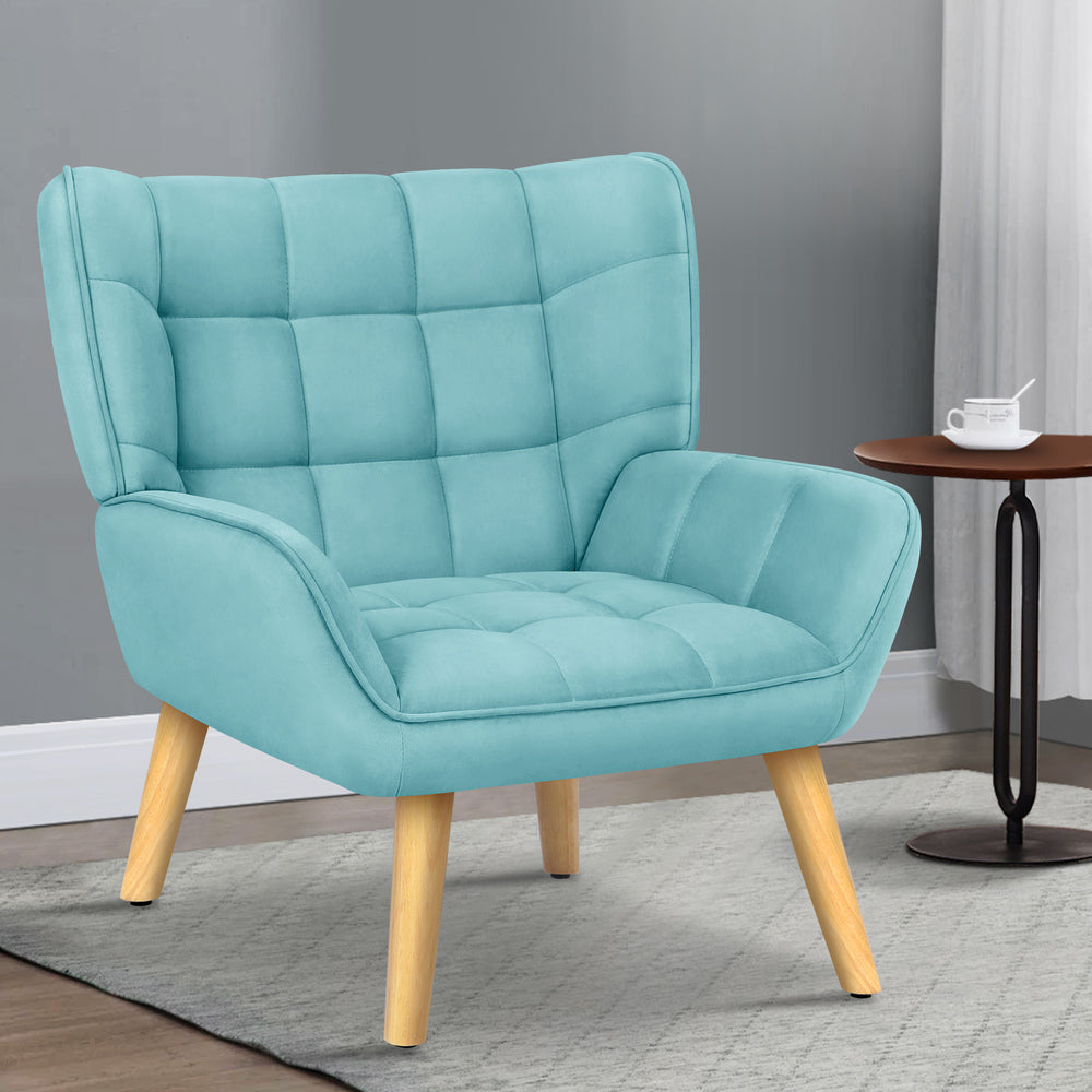 ALFORDSON Armchair Accent Chair Lounge Sofa Wooden Couch Velvet Tub Seat Blue