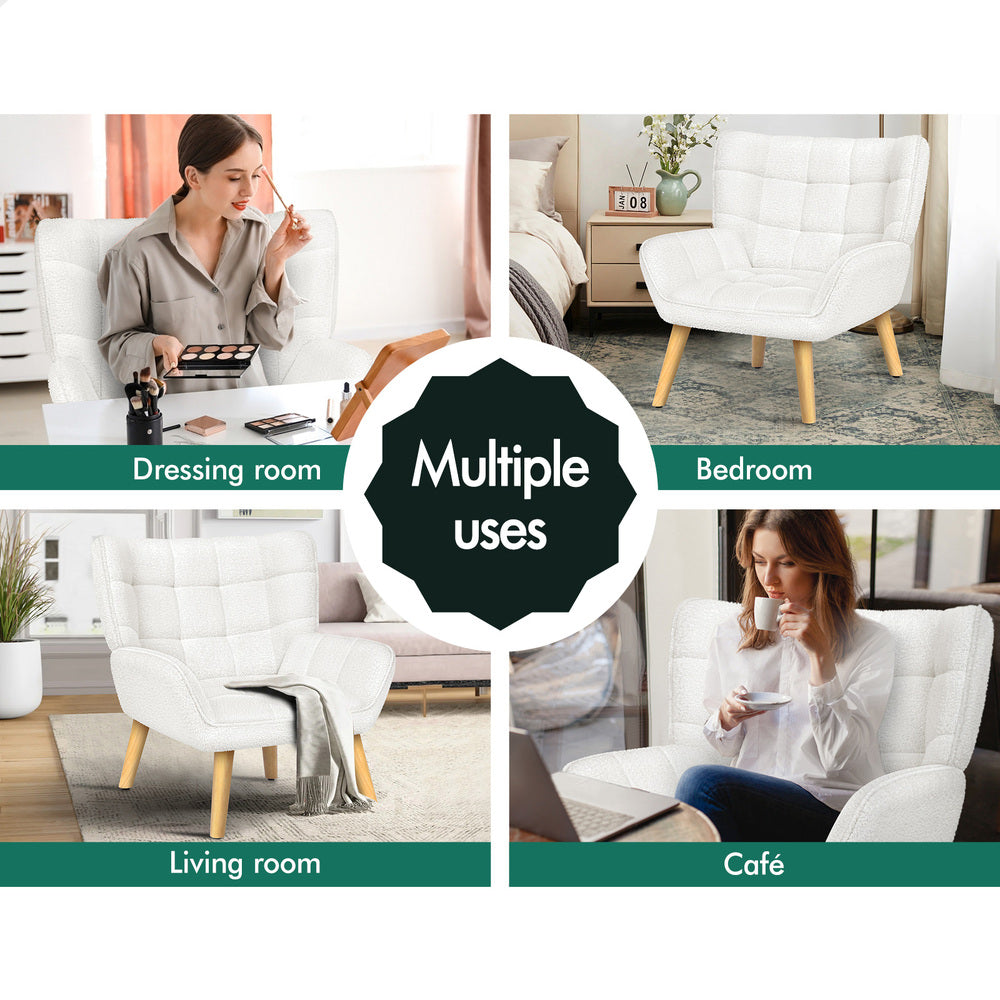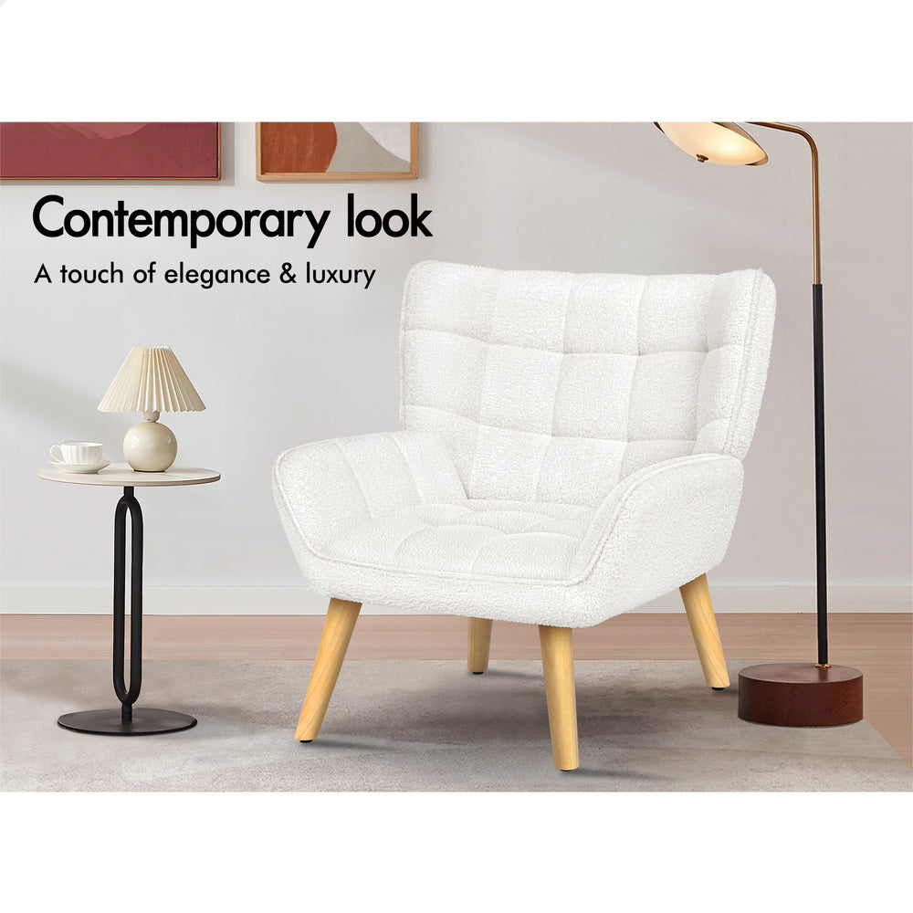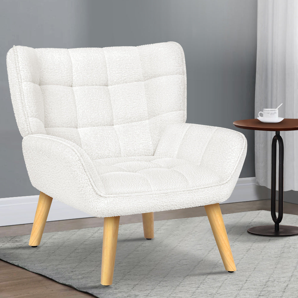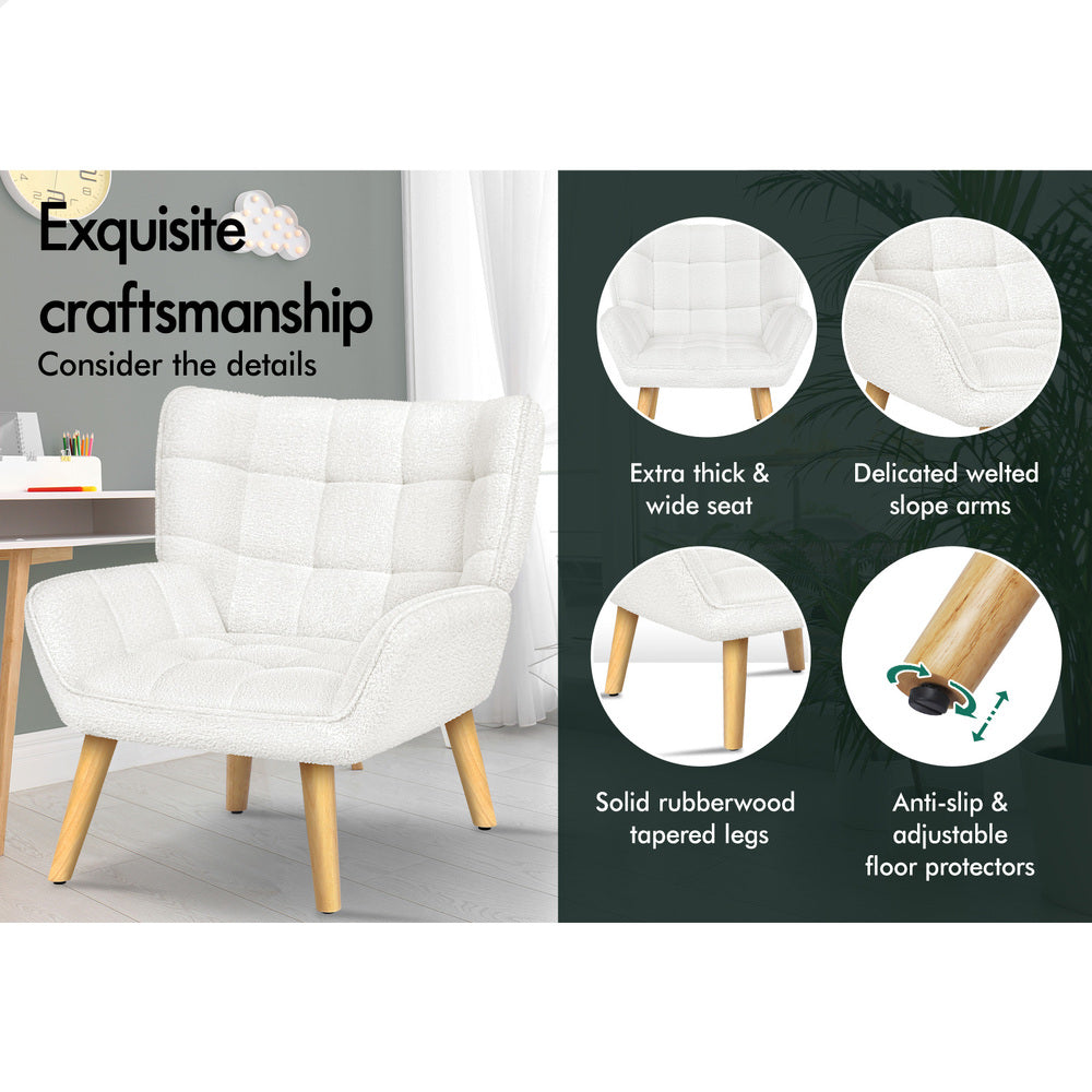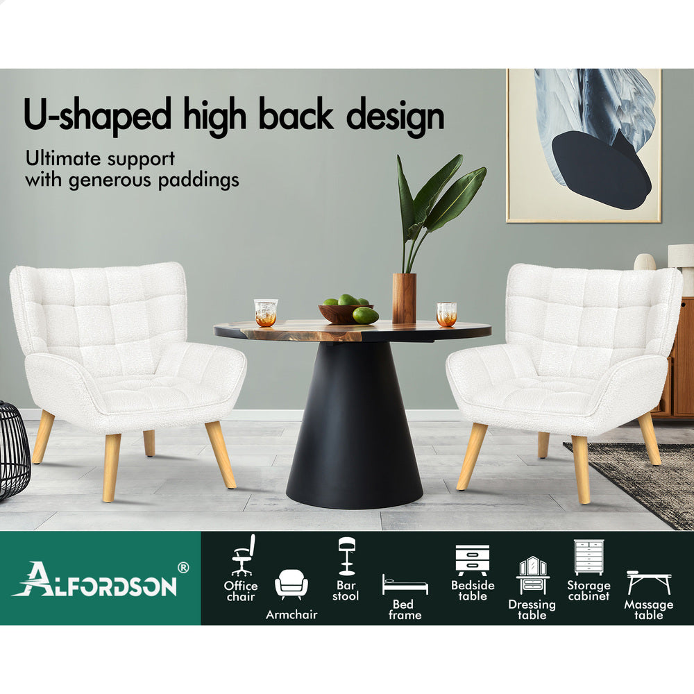ALFORDSON Armchair Lounge Accent Tub Chair Sofa Couch Seat Sherpa Boucle White