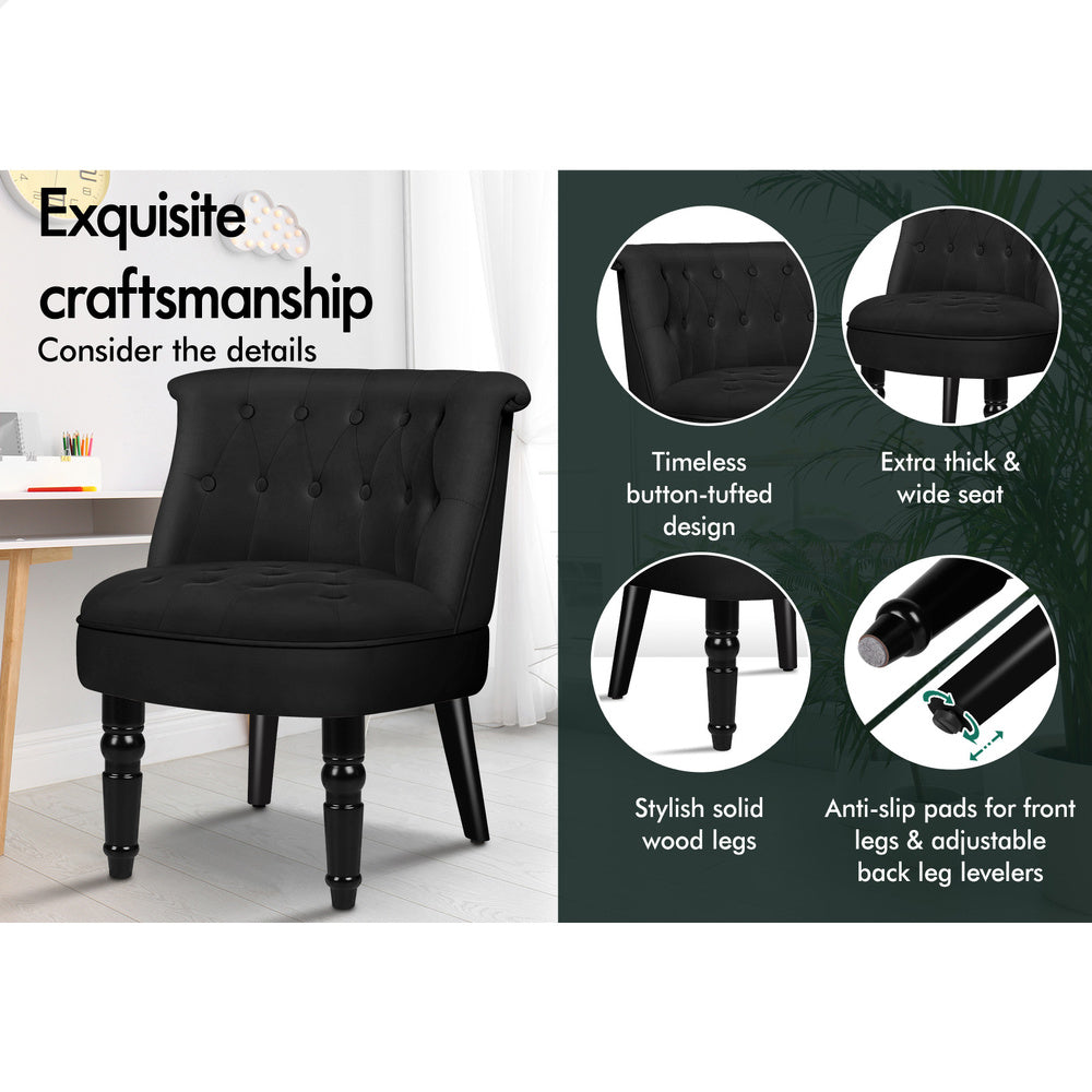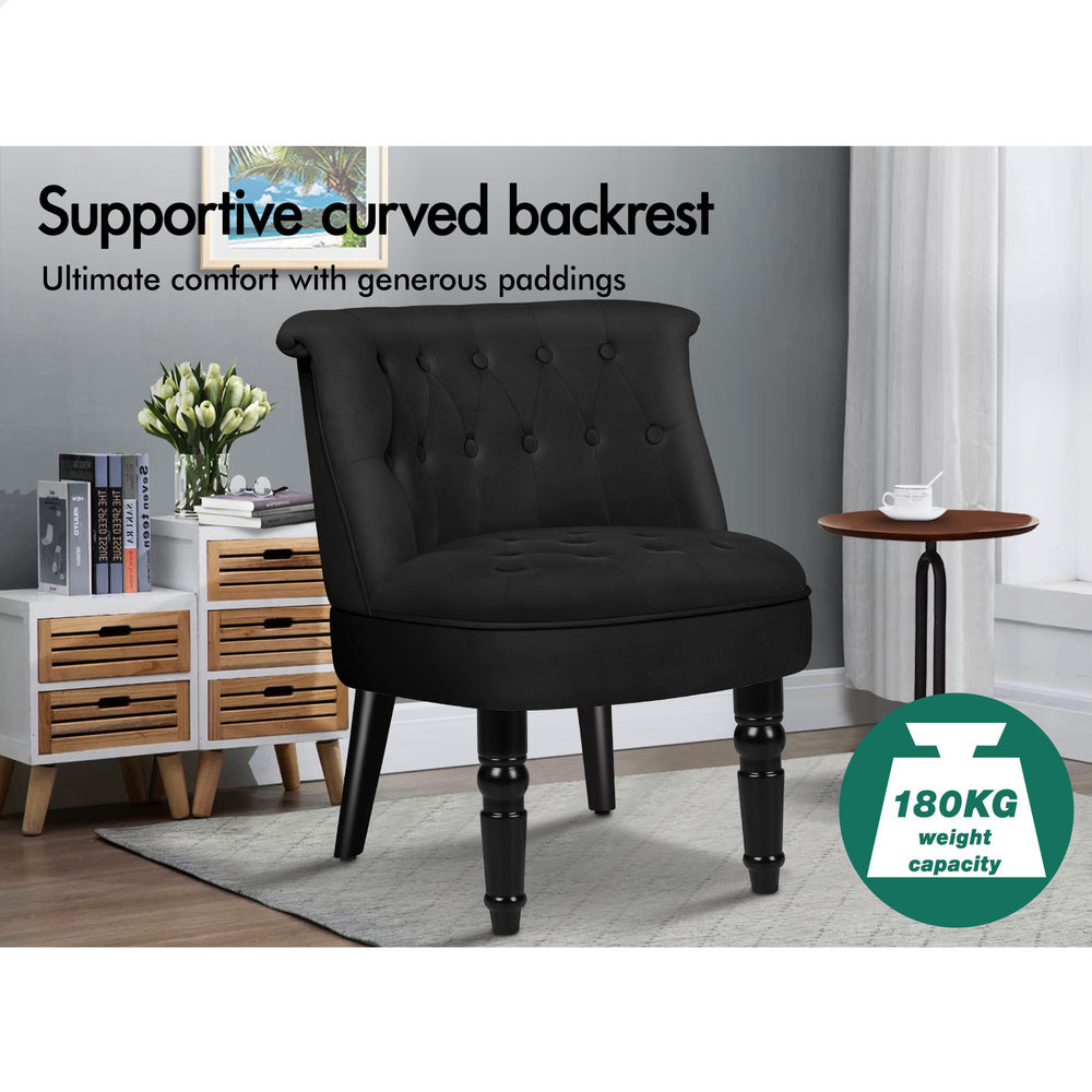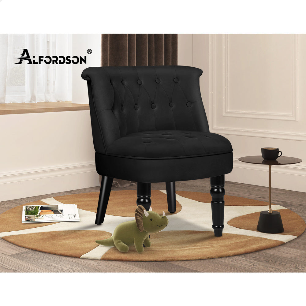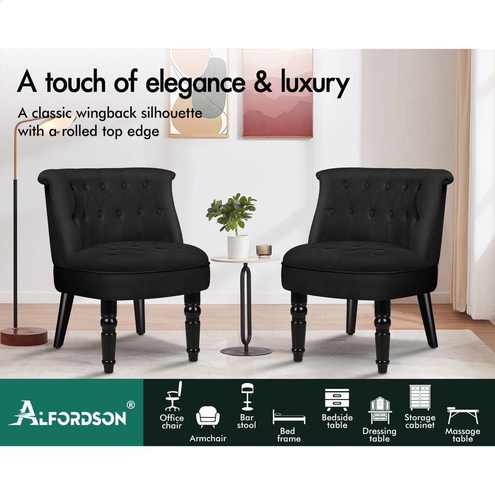 ALFORDSON Armchair Wooden Accent Chair Wingback Lounge Sofa Couch Velvet Seat Black