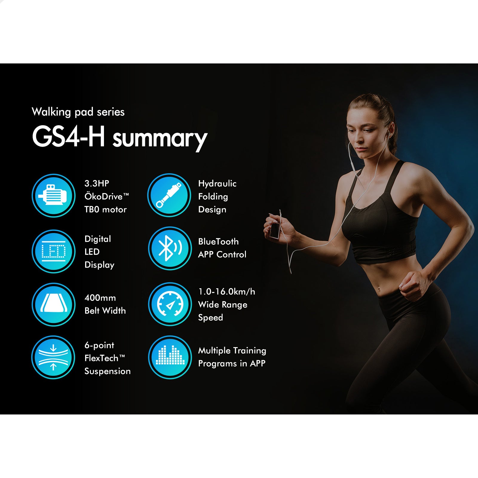 Powered by a 4.0HP ?koDrive motor, this walking pad delivers smooth, energy-efficient performance with a speed range of 1-18KM/H, giving you the perfect pace whether you're warming up or pushing your limits. Better still, this model has 12 pre-set programs (and even more when you access in the APP) you can use to help you lose weight and to automatically manage your walk or run. When you choose a pre-set program the treadmill will keep you on pace by alternating the speed of your workout.